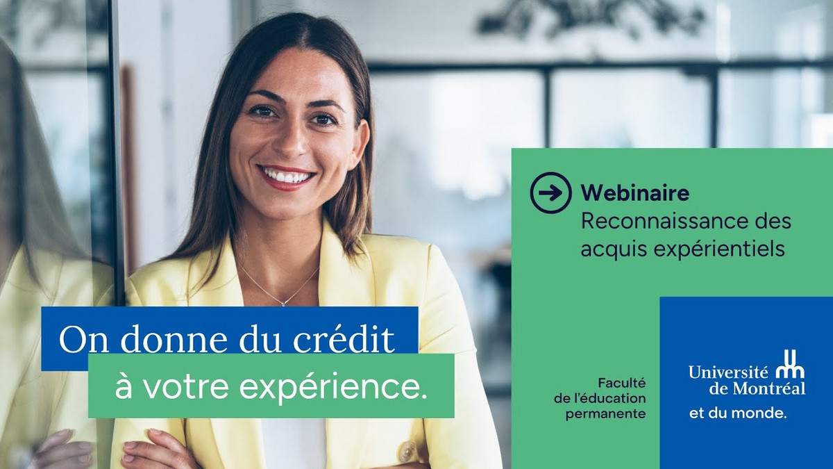 Découvrez la reconnaissance des acquis expérientiels (RAE) dans ce webinaire : quels acquis sont reconnus, à qui s'adresse la démarche de RAE, quels programmes sont ouverts, en quoi consiste le portfolio, la durée de la démarche et des exemples de profils de RAE.